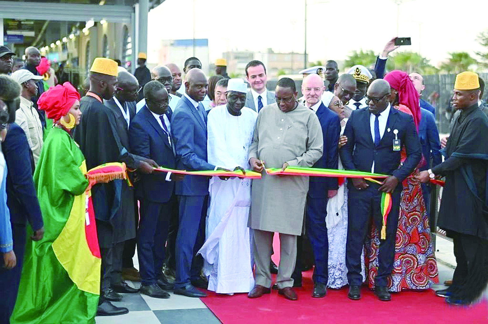 时任塞内加尔总统萨勒(前排右三)为达喀尔快速公交系统项目剪彩(登巴·盖伊 摄)