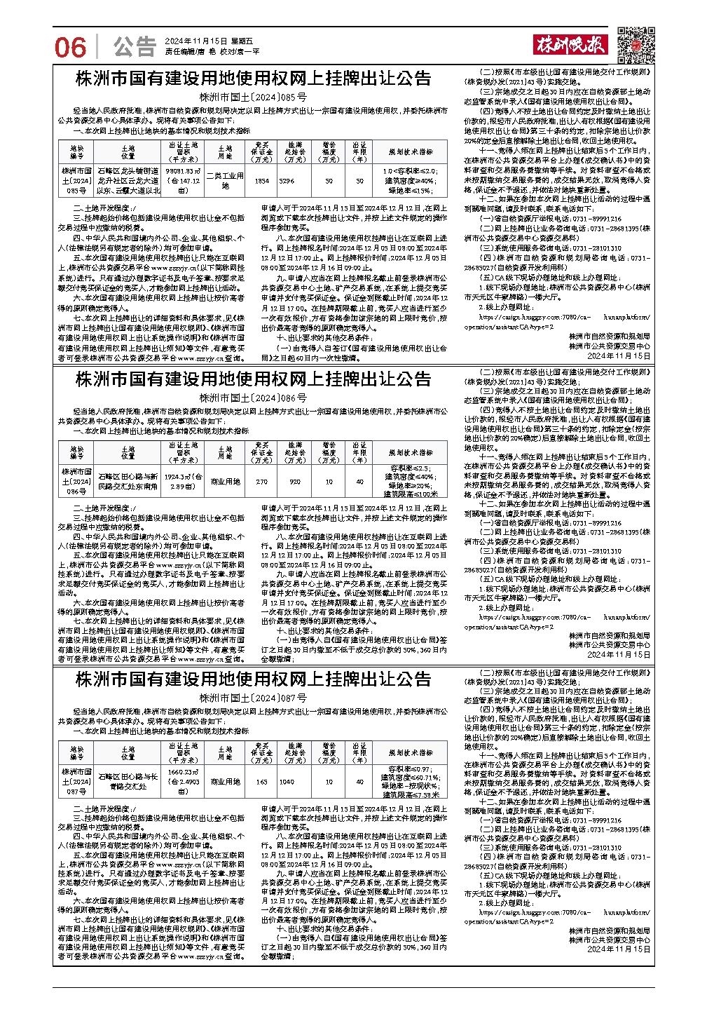 株洲市国有建设用地使用权网上挂牌出让公告