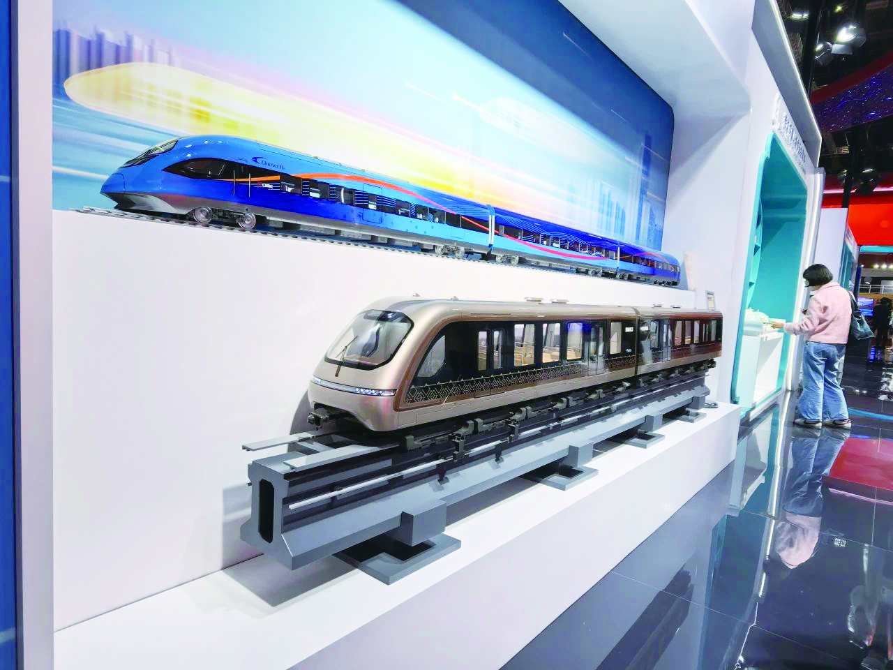 中车株机研制的凤凰磁浮列车“开”进进博会中国馆。 企业供图