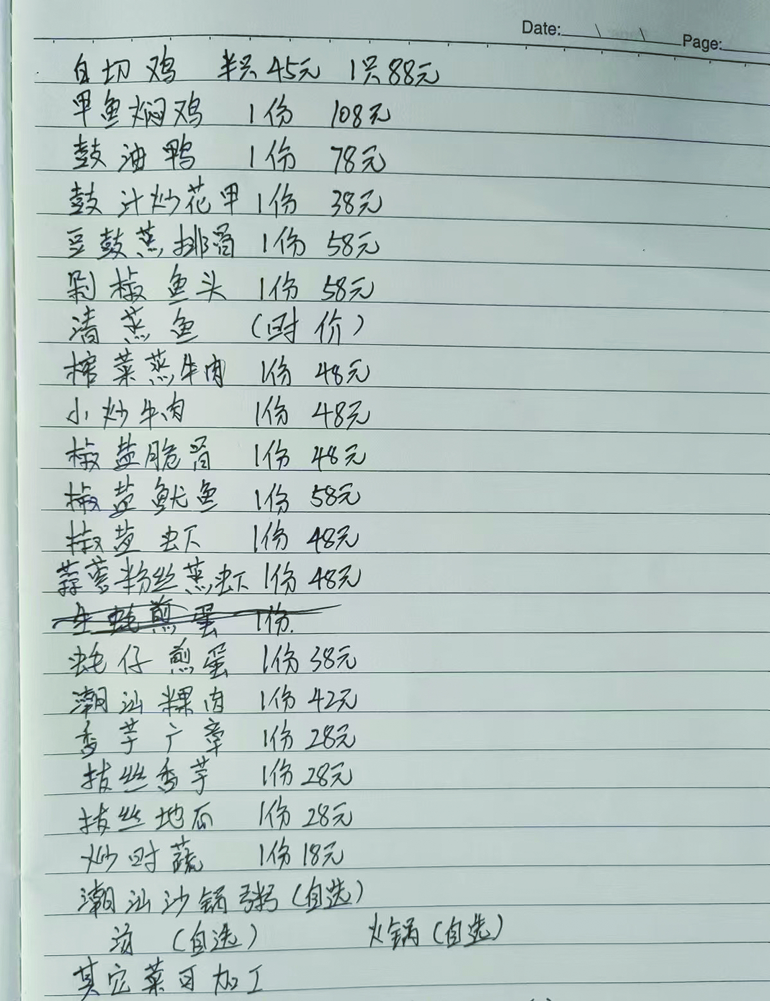 蔡涌增初步拟定的可代炒餐单。 记者/伍靖雯 摄