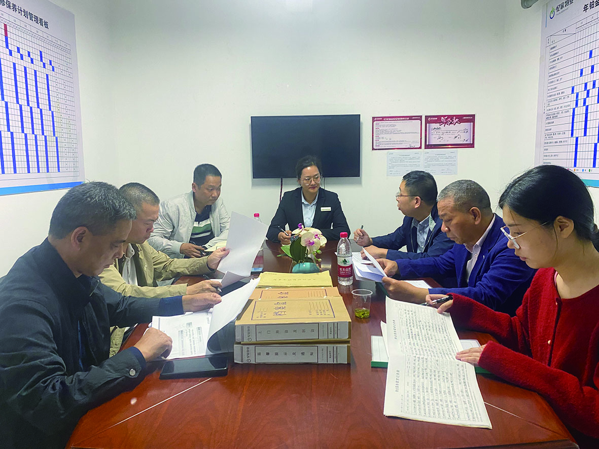 考评组检查小区物业管理工作台账。 记者/旷昆红 摄