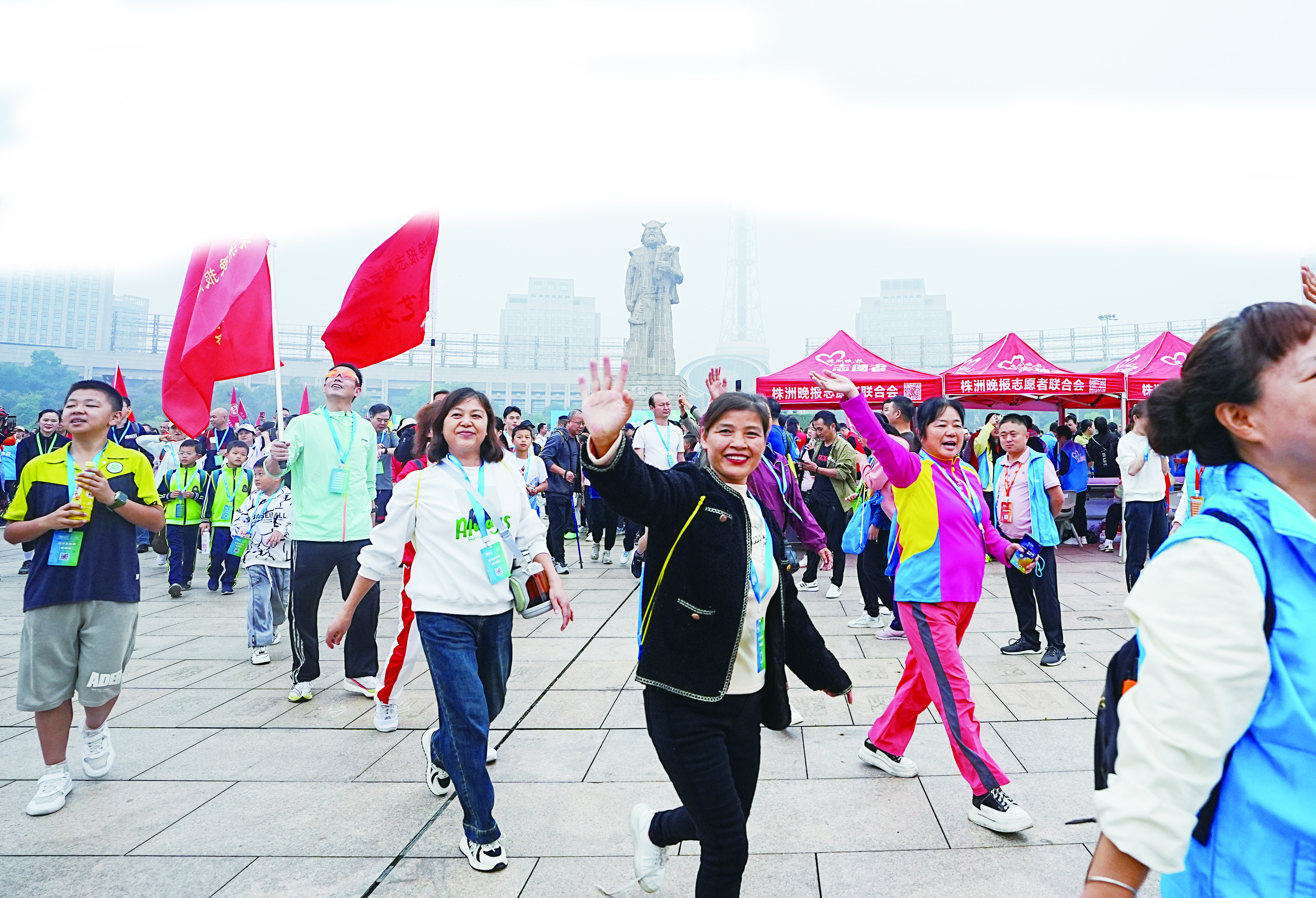 徒步湘江环保毅行启动,参与市民出发。 株洲晚报融媒体记者 刘震 摄