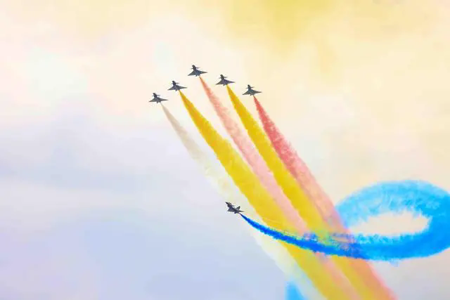 在飞行表演方面,中国空军“八一”飞行表演队驾驶全新换装后的歼-10C和“红鹰”飞行表演队硬核上演编队俯冲、利剑回环、蛇形扭转等一系列精彩动作。首次亮相的歼-15A与歼-10C、歼-20、歼-16、运-20、教-10等同台献技,生动展现中国空军转型跨越崭新成就。