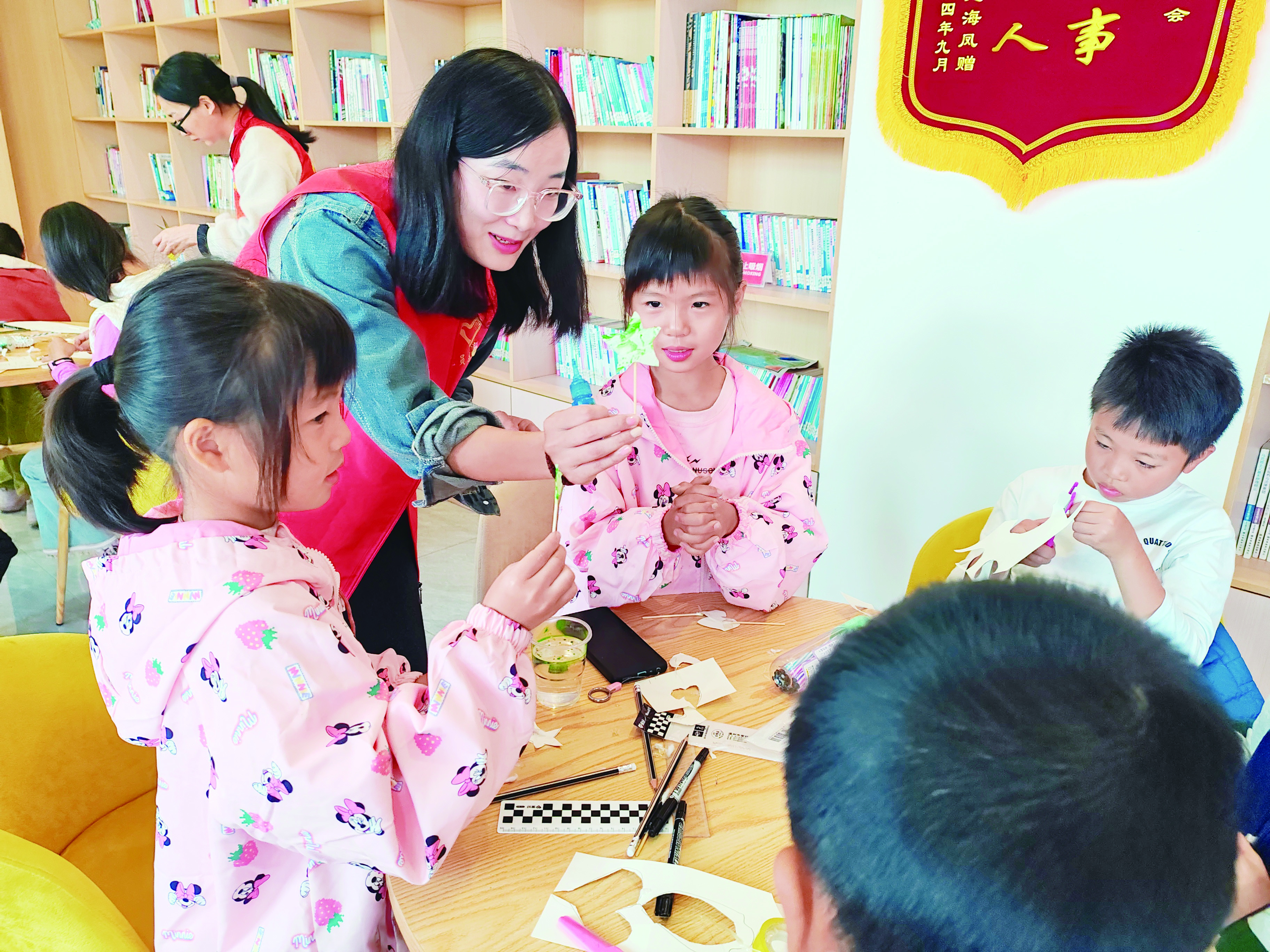 在化学趣味活动中,青少年们变身小小艺术家,制作出一个个独一无二的迷你漆扇。物理趣味活动中,老师先用简单的“拿杯子”游戏,引导青少年们认识空气和力,在老师的带领下,青少年们用卡纸折出惟妙惟肖的“小鲸鱼”,并巧妙插入吸管模仿鲸鱼换气……此次活动,深受孩子和家长的喜爱。图为活动现场。