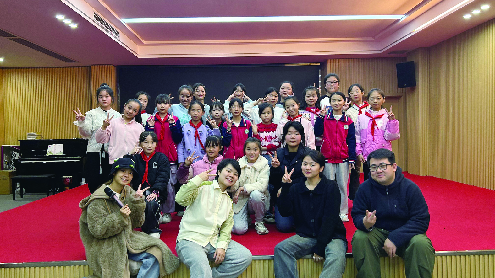 在三门镇中心小学多媒体室,墙上写着“教育一个孩子,带动一个家庭,影响整个社会”。这句话,在此刻具象化了。音乐学子们用音乐回馈社会,让更多孩子们接触音乐,接受音乐教育,播下梦想的种子。未来,这颗种子,有可能开出音乐的花,有可能开出舞蹈的花,也有可能只是开出一朵快乐的花,总之,这世上又多了一种美好的可能。