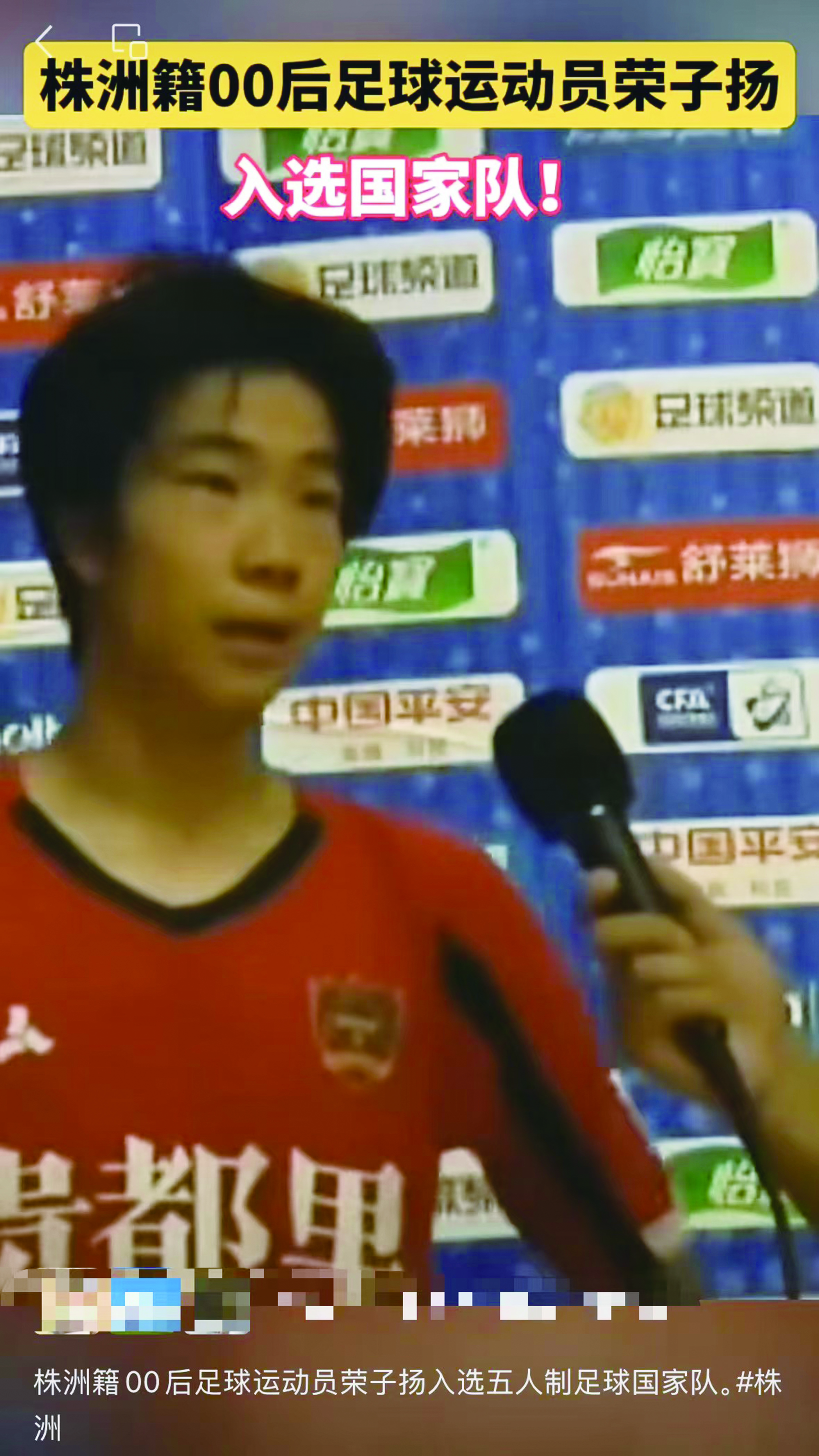 株洲籍足球运动员荣子扬,被中国五人制足球国家队征召,成为株洲首名入选国家队的足球运动员。