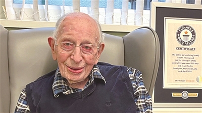吉尼斯世界纪录机构11月26日表示,112岁的英国老人约翰·艾尔弗雷德·廷尼斯伍德在一家养老院里去世。这位老人1912年8月26日出生于英格兰西北部港口城市利物浦,经历过两次世界大战。