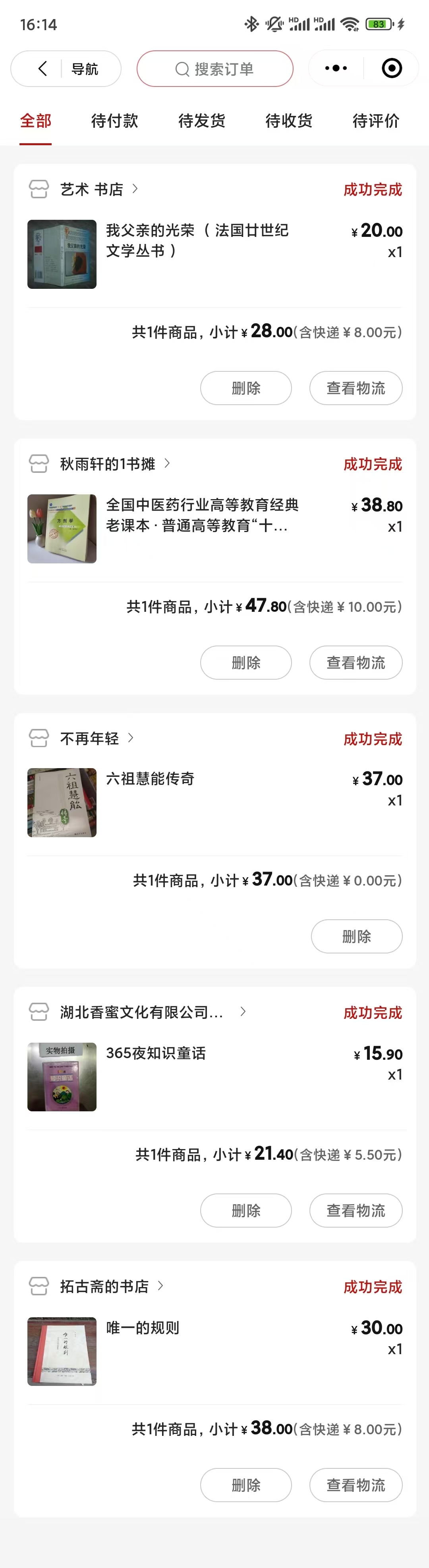 何先森在“孔夫子旧书网”的部分订单。受访者供图