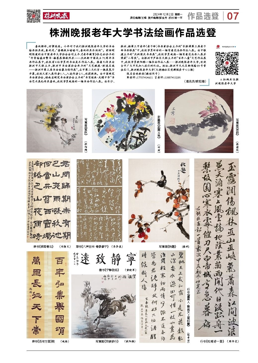 株洲晚报老年大学书法绘画作品选登