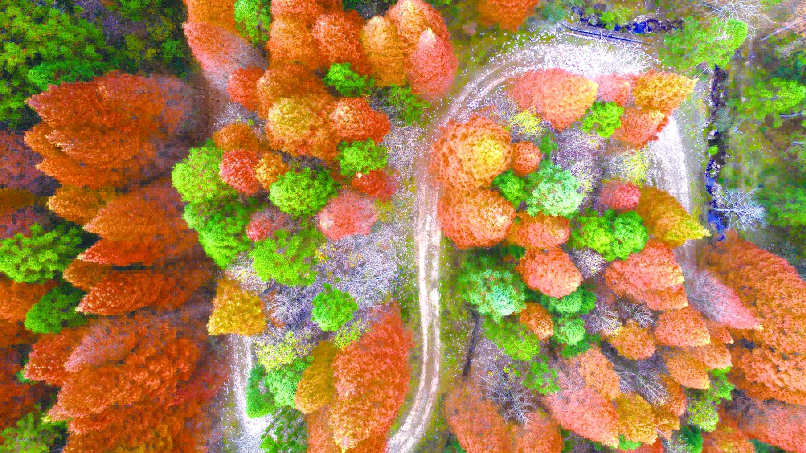 神农谷国家森林公园如油画一般的秋日水杉林。通讯员供图