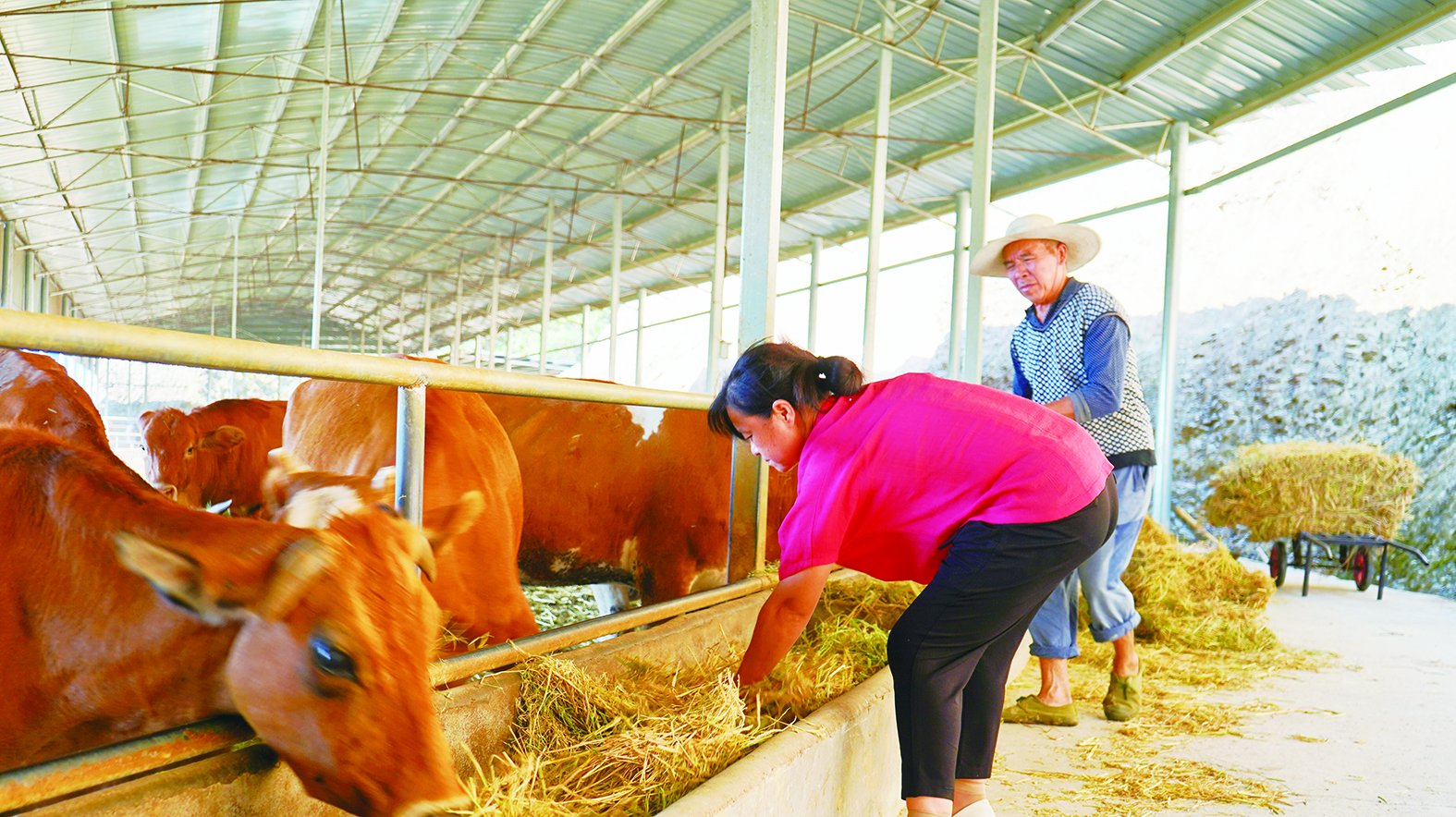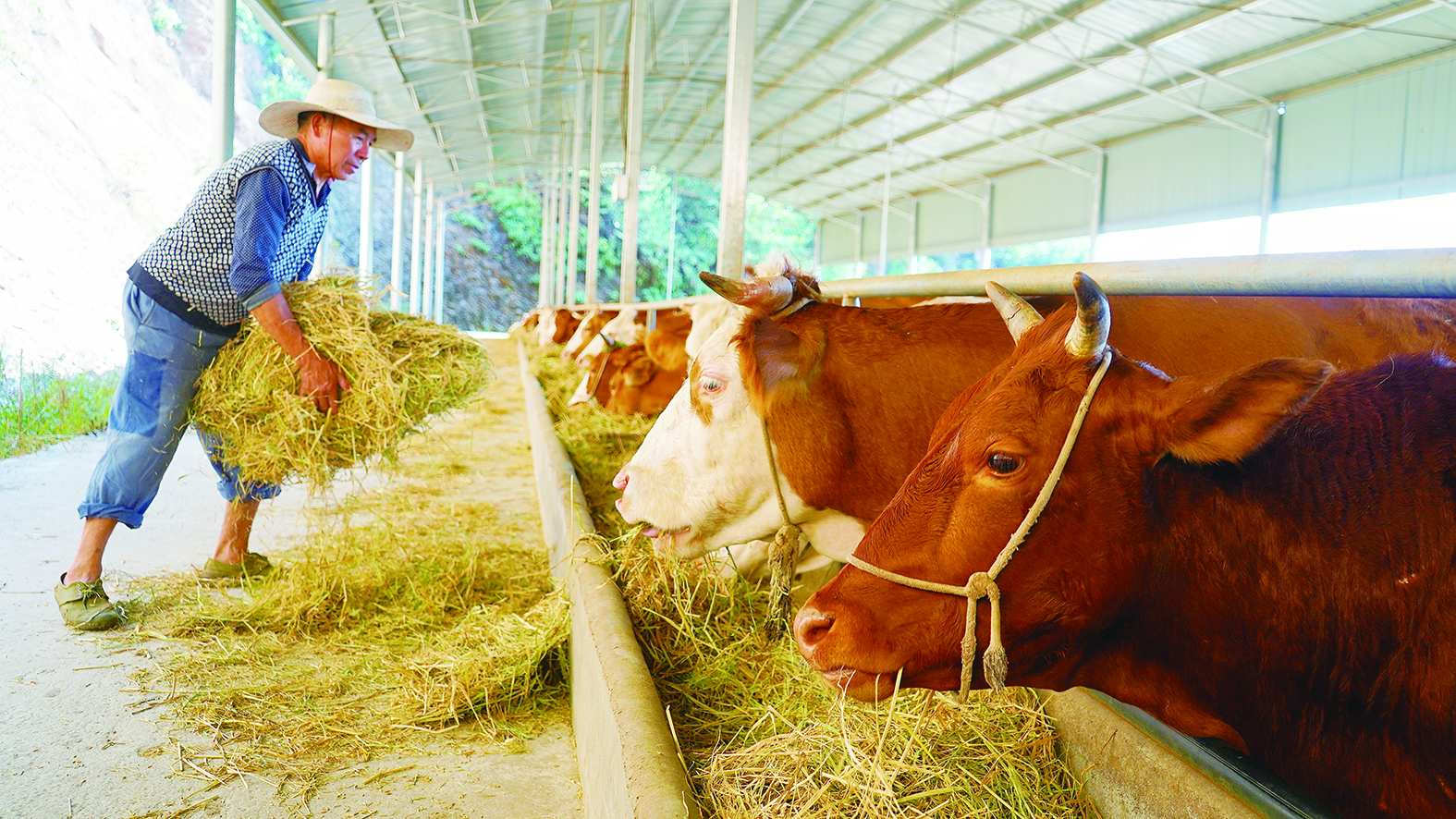 齐国华喂黄牛。 通讯员 肖霜/供图