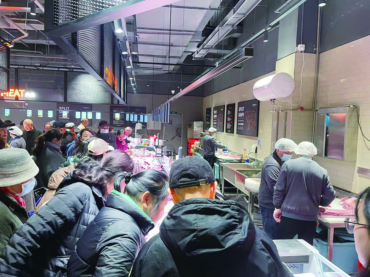 当天早上9时,距离超市开门还有18分钟,等候在门口的消费者已经排起了长队。随着营业时间的到来,消费者蜂拥进入超市,各个摊位前都挤满了人。许多人好奇地看看这,逛逛那。这个位于商场负一楼、曾一度陷入低迷的超市,俨然迎来了第二春。