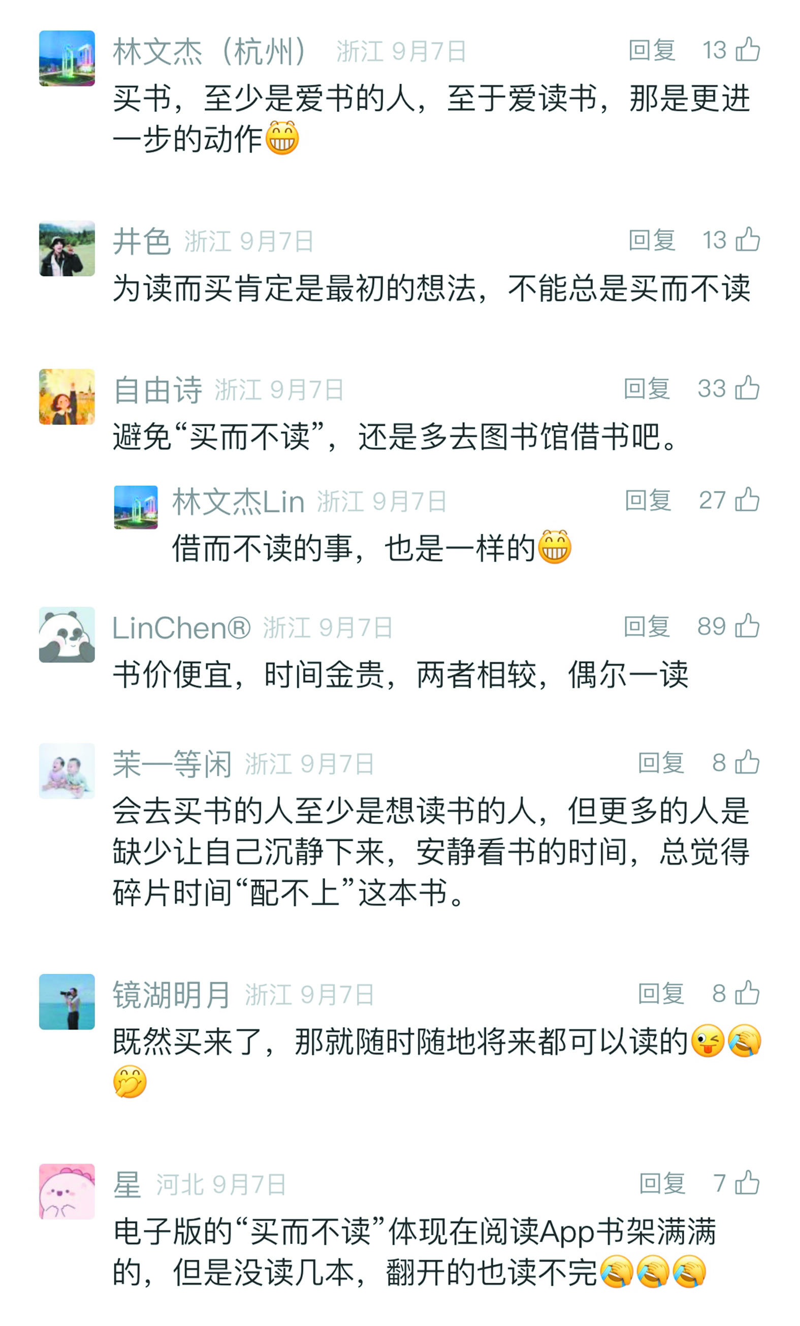 “我退休后有时间读书,但我女儿工作忙,买了很多书都没时间读。”刘女士则认为,买书不读是一种个人选择,不应该被外界评判。