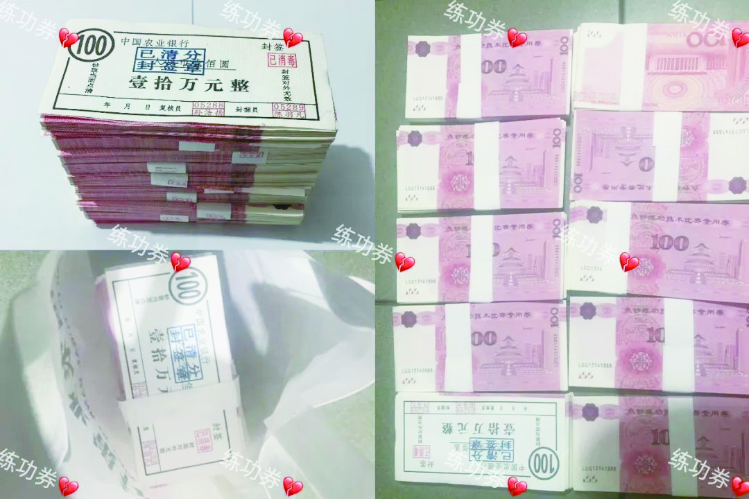 次日早上,蒋女士打开袋子盘点“霸道总裁”送来的10万元现金,却发现全是银行员工的“练功券”。又气又急的她,当即拨打了报警电话。