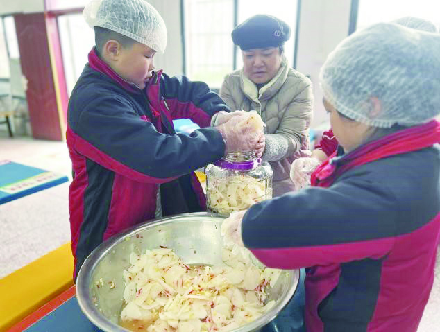 同学们腌制萝卜。 通讯员供图
