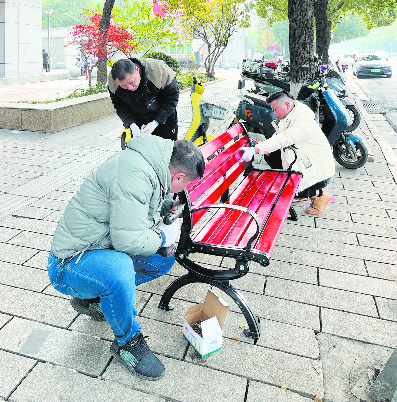 12月19日,天元区黄河南路,人行道上增加了几张新休闲座椅。天元区市政维护中心工作人员介绍,此次将在黄河南路、黄河北路、庐山路、神农大道、珠江北路、长江北路等城区道路边更换、增补休闲座椅55张,为市民休憩提供便利。