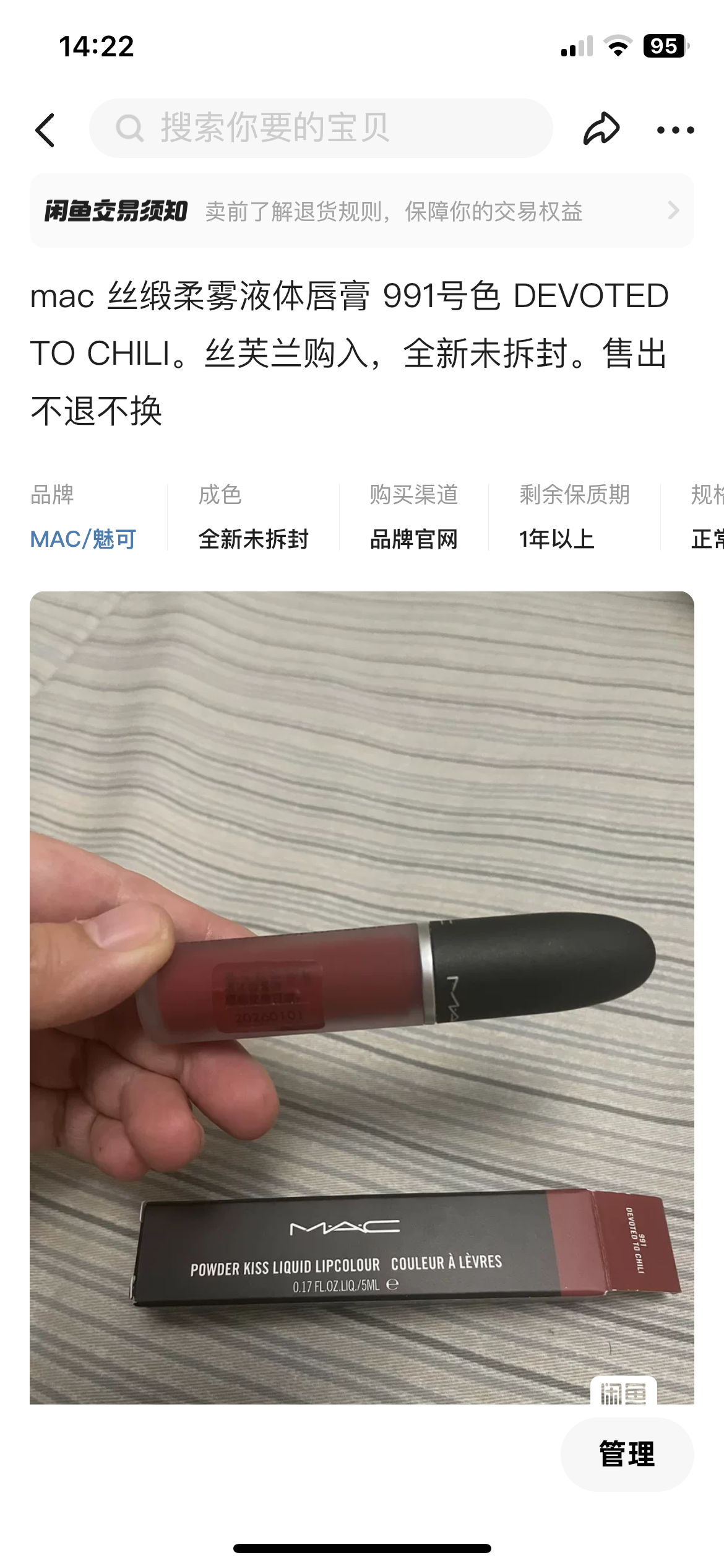 这几天,熊晨收拾搞卫生,发现了这只口红,趁着离保质期还有一年,把它拍照发到了网上,“原价160元,闲置价88元。”当天晚上,就有人前来询问。熊晨介绍了商品购入渠道和新旧程度,并拍下商品视频。很快,对方拍下商品并付款。