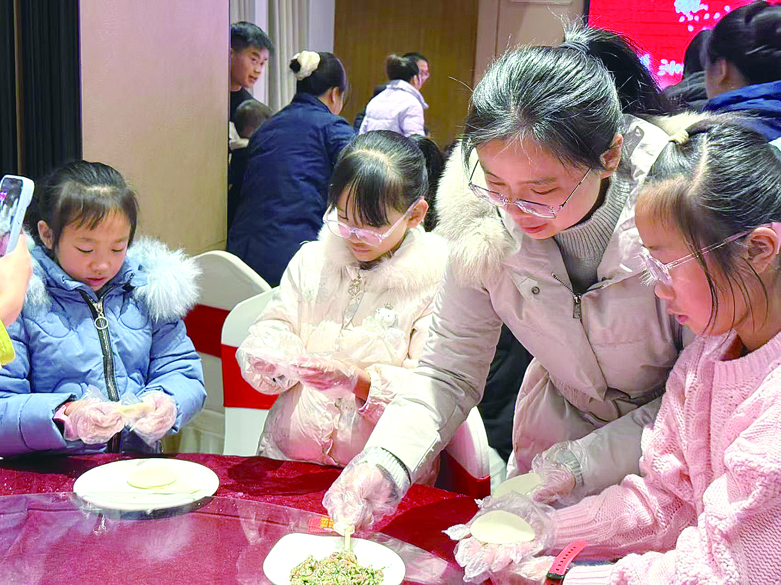 校园记者和家长热闹包饺子,一起过冬至。记者/彭慧洁 摄