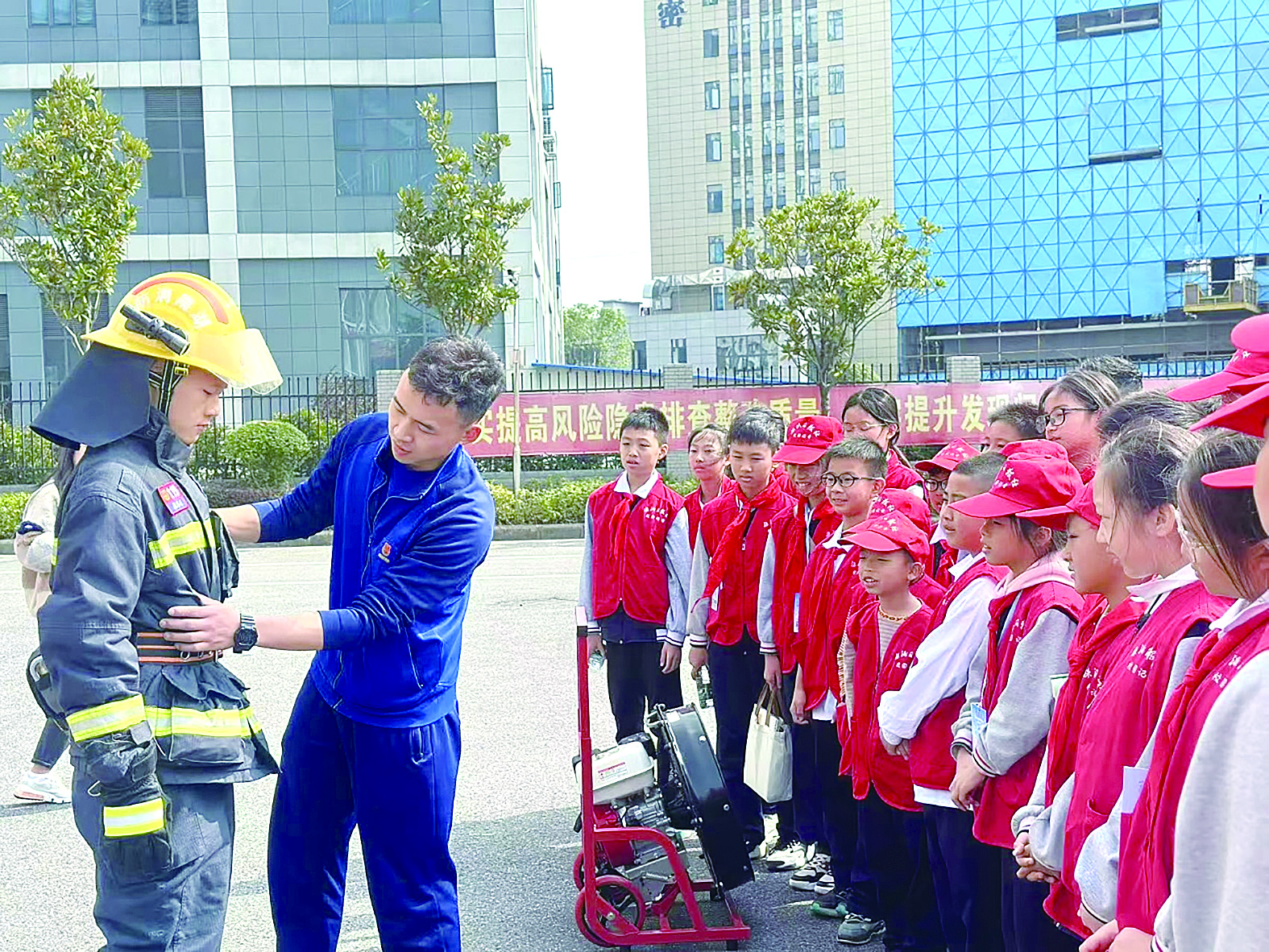 美的学校校园记者学习消防知识,采访了解消防员的日常生活。 记者/颜家萍 摄