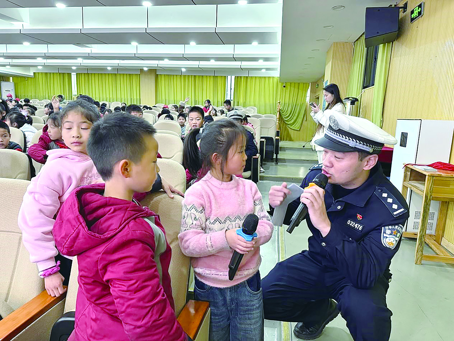 石峰交警大队走进九方小学。记者/魏朋 摄