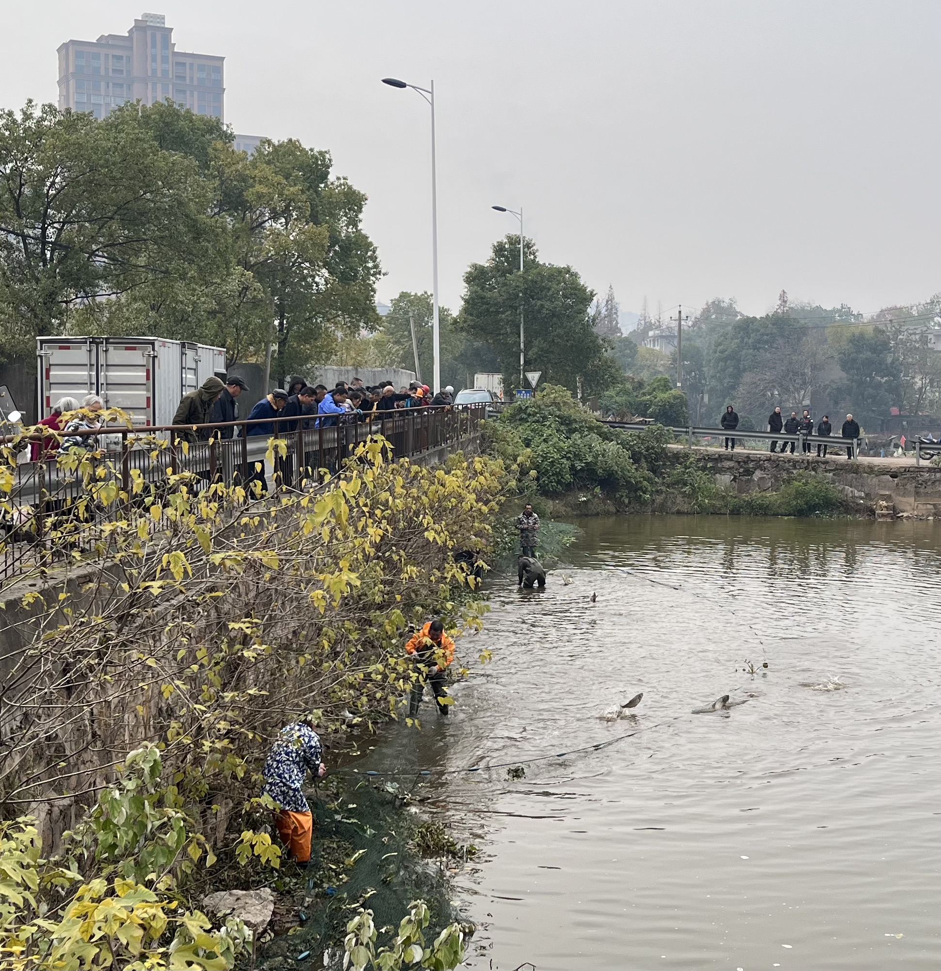 12月26日,石峰区北站路边,当地几个农民在一口池塘中忙着捕鱼,这一行为遂引起众多路人围观。现场有人拍照,有人呐喊“指挥”,有人欢呼尖叫,呈现出一幅“鱼跃人欢”的美好画面。