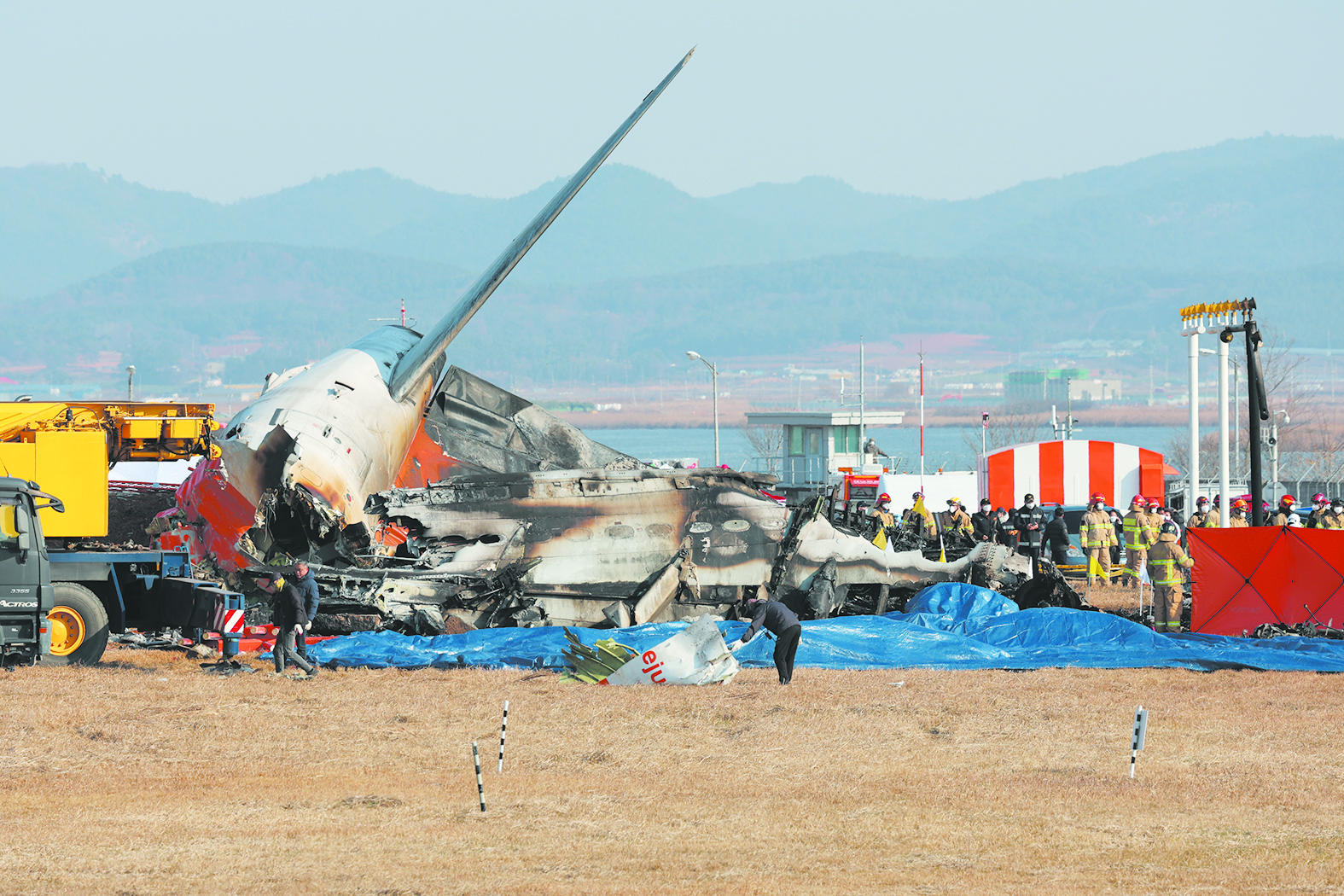 12月29日在韩国务安机场拍摄的事故救援现场。